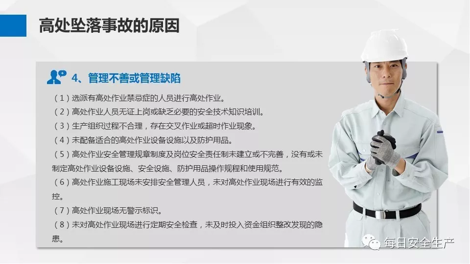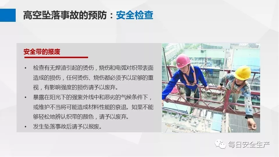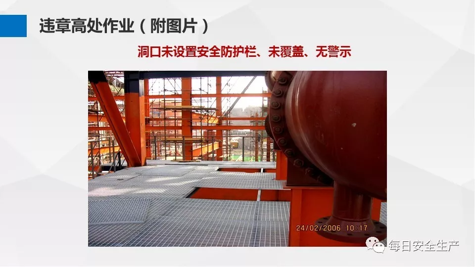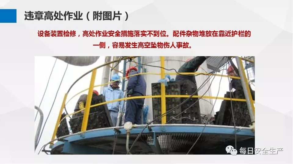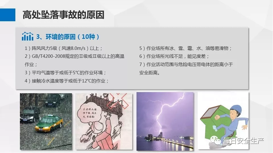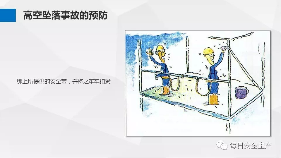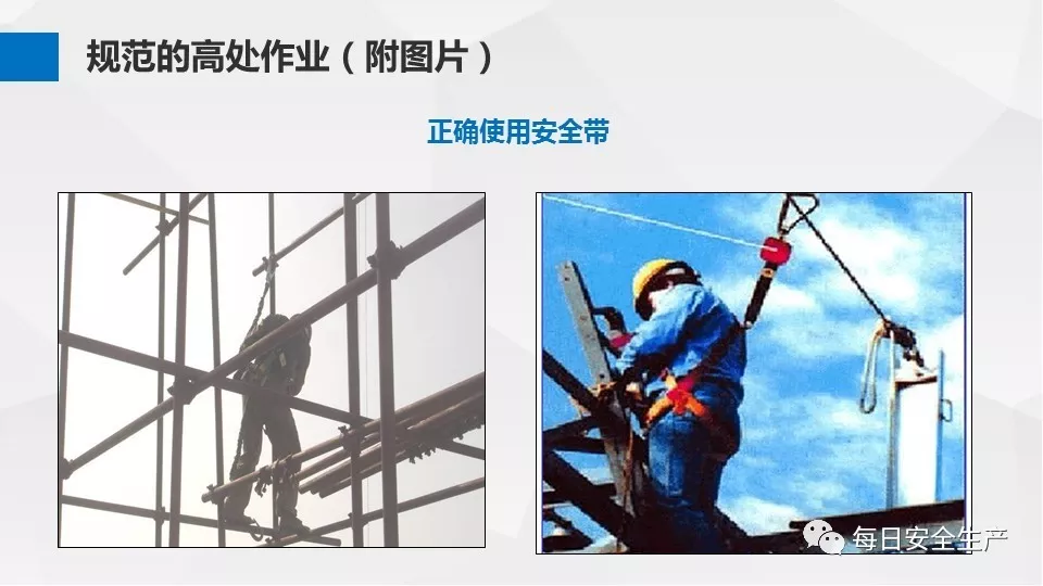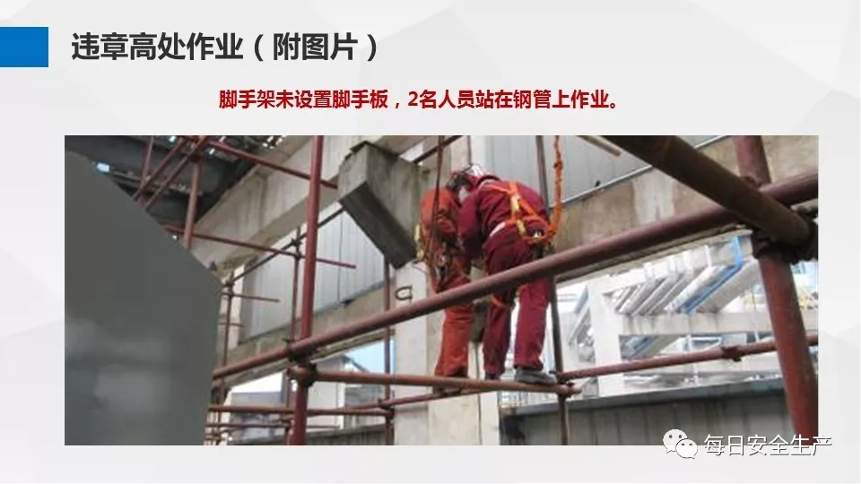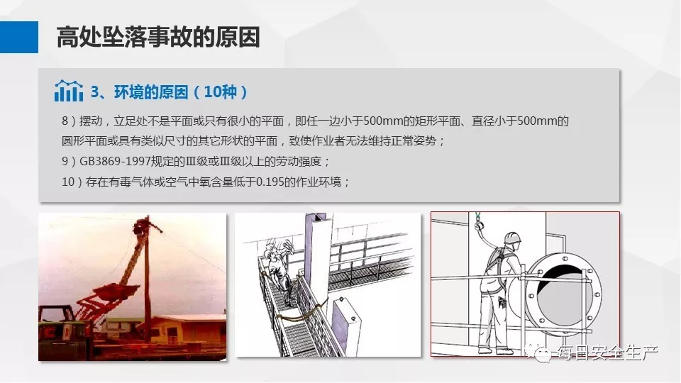 3、沒有戴安全帽、系安全帶,不扎緊褲管和無人監(jiān)護不登高。