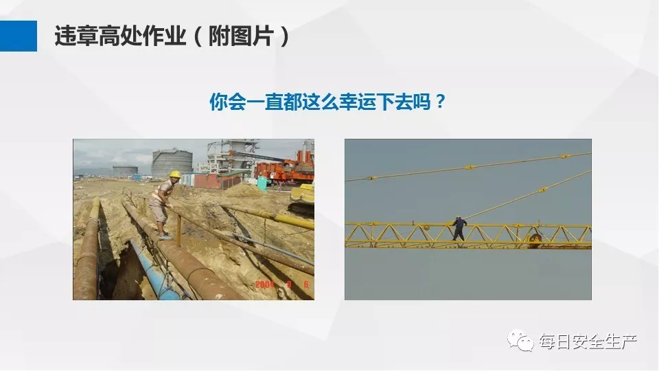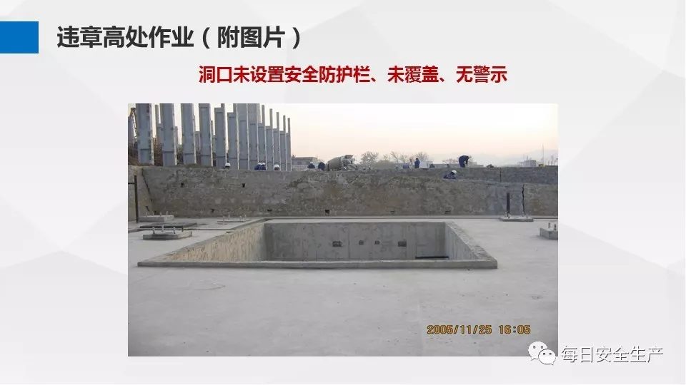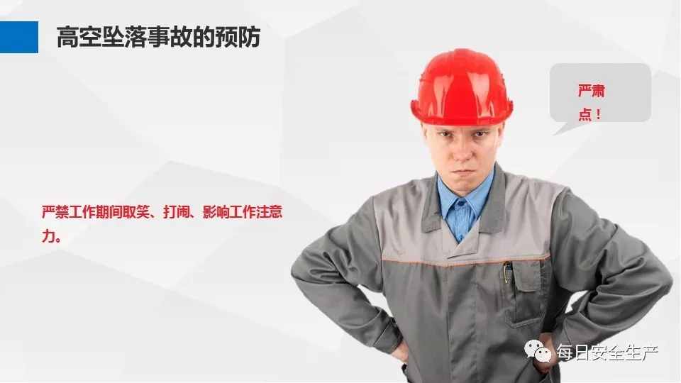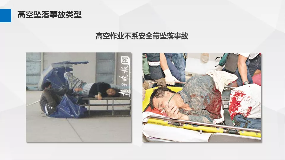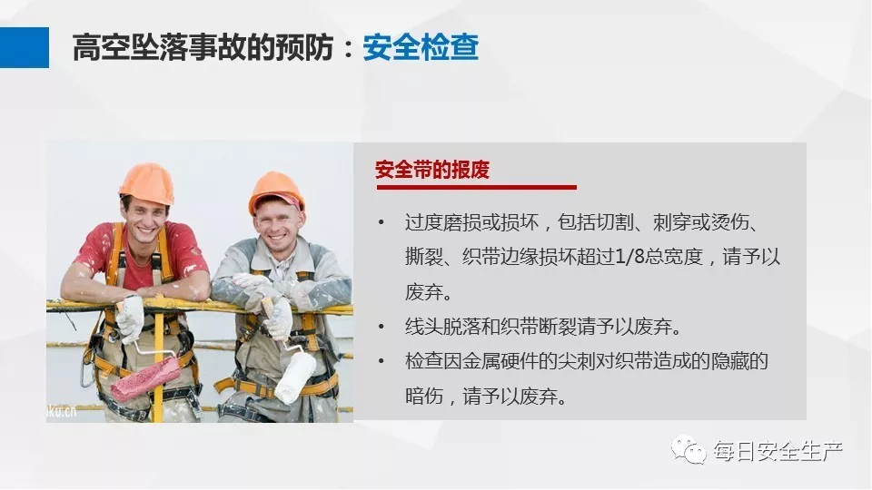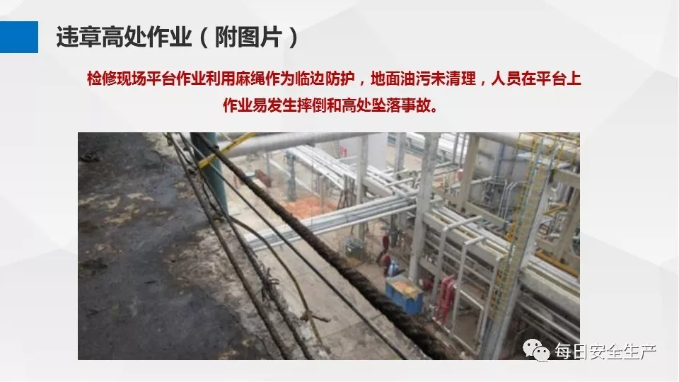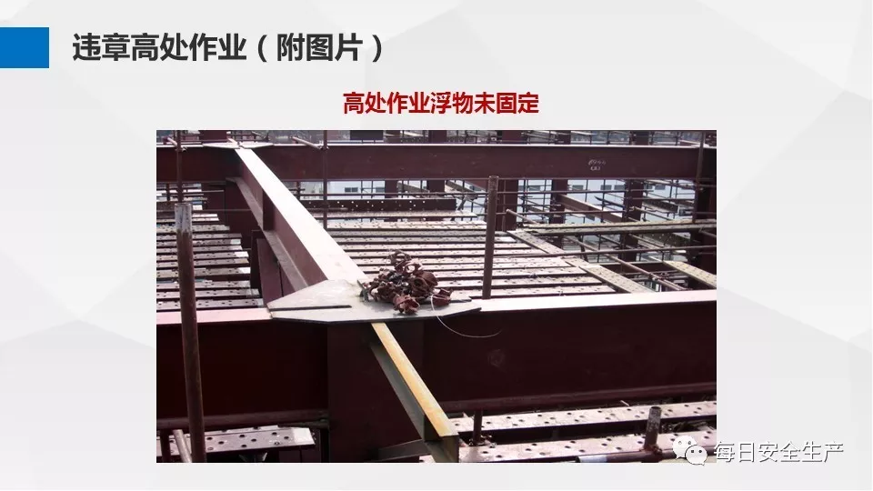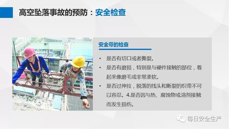 3、沒有戴安全帽、系安全帶,不扎緊褲管和無人監(jiān)護不登高。