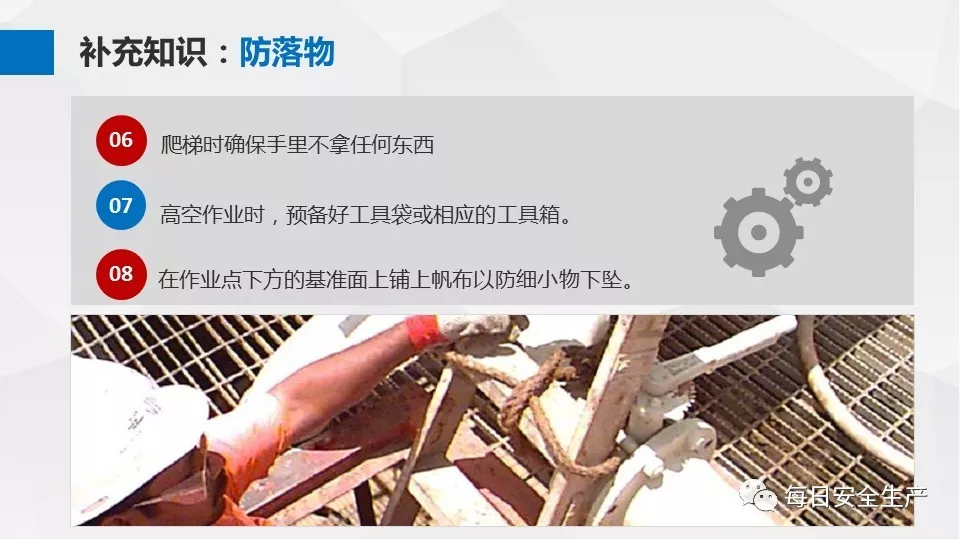 7、工具設備在高處沒有防墜落保護措施,如使用工具袋或綁扎等措施。