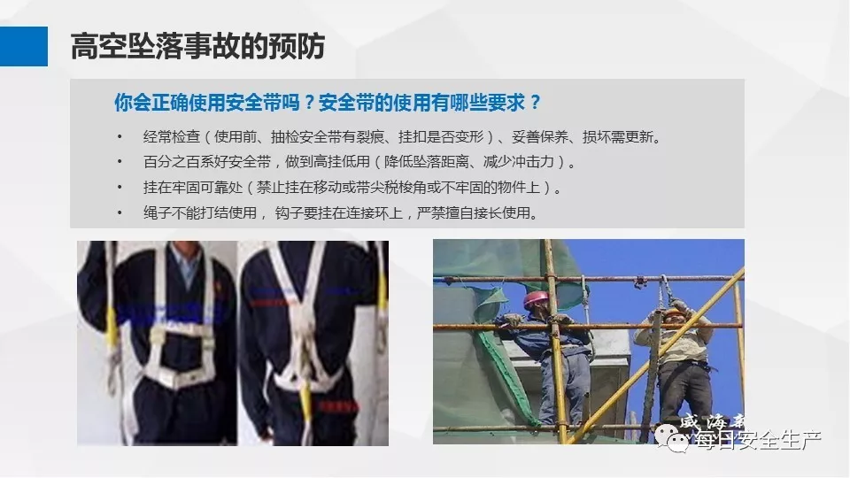 5、高處作業(yè)時安全帶沒有高掛低用,沒有考慮到緩沖帶的墜落安全距離。