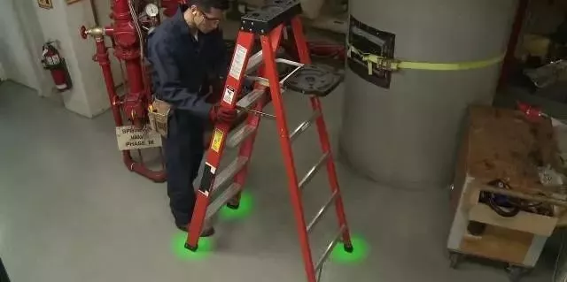 梯子要放置于堅固平坦的表面,并且確保所有梯腳與地面接觸,確保梯子的踏板和鞋底沒有油或其他易滑物質(zhì)。