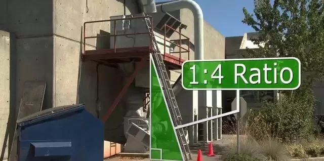 按1:4的比例架設直梯或延伸梯,即水平距離為1米時,垂直距離為4米。