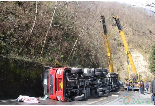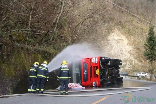 消防隊(duì)員10時(shí)48分到達(dá)現(xiàn)場(chǎng),偵查發(fā)現(xiàn)天然氣槽車側(cè)翻在道路靠山體一旁。經(jīng)偵察,事故車輛為一輛裝載22噸液化天然氣槽罐車側(cè)翻,事故發(fā)生后車內(nèi)兩名司乘人員自行撤離出,身體并無大礙,車輛罐體表面無破損,未發(fā)生泄漏。