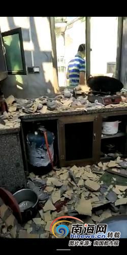 廚房屋頂瓦片震碎掉落