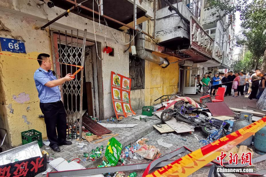 8月5日早8時(shí)左右,位于哈爾濱市道里區(qū)安順街的一家餐館發(fā)生疑似燃?xì)獗?,現(xiàn)場(chǎng)一片狼藉,爆炸震碎二樓樓板,一老人墜落受傷,餐館老板娘受傷嚴(yán)重,目前兩人已被送往醫(yī)院就醫(yī)。圖為事發(fā)餐館門口。中新社記者 范英杰 攝
