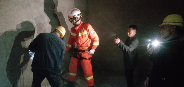 “在建居民樓為框架結構,墻壁尚未硬化加固處理過,可否比照兩人被困點,從屋內(nèi)向外鑿出一個洞來,將他們救進來?”救援現(xiàn)場,有人提出了一個大膽的想法。后經(jīng)綜合評估商定,現(xiàn)場救援人員覺得此方案可行。