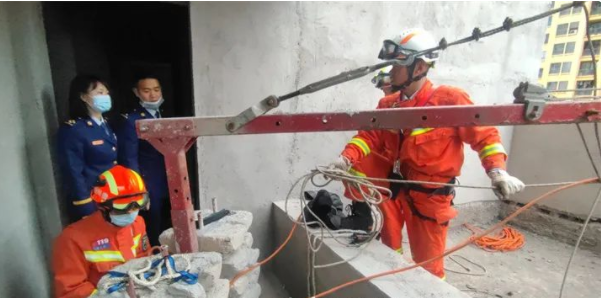 “師傅,千萬不要亂動,保持情緒穩(wěn)定,我們馬上來救你們!”消防指揮員一邊通過喊話,安撫被困工人,一邊令人攜帶救生繩索和防墜落部件等救生器材,進入建筑物內(nèi)展開救援。