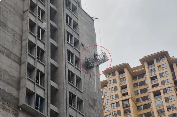 吊籃鋼絲繩突然斷裂,兩名工人被困30米高空!