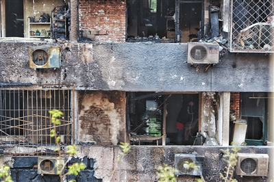 該小區(qū)4號樓1單元101的劉先生家則基本上化為灰燼。記者在他家看到,墻壁被燒成焦黑色,地上沉積著到腳踝的灰燼,整個房子被燒成毛坯房樣?!吧嘲l(fā)、柜子這些大件物品都沒有了,廚房、衛(wèi)生間都是玻璃的,也都燒化了,還有一些字畫?!眲⑾壬f,家里藏有不少洋酒等,損失慘重。