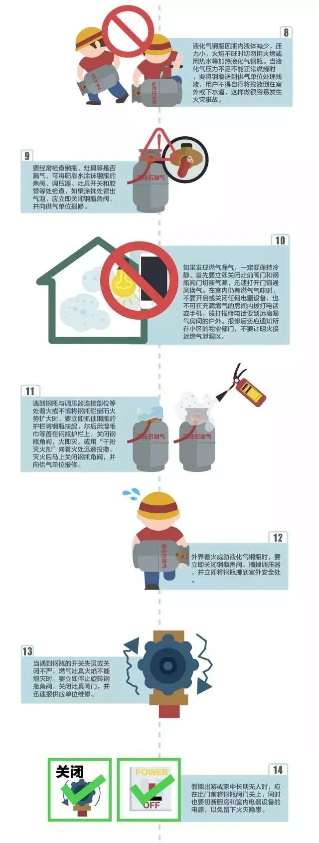 液化氣罐爆炸很可怕,安全使用液化氣罐很重要。所以,除了掌握上面的安全知識(shí),液化氣罐周身遍布銹跡和油漬、用手搖晃液化氣瓶、將液化氣瓶?jī)A斜放置、將液化氣罐放入熱水盆…這些事也萬萬不要做了!