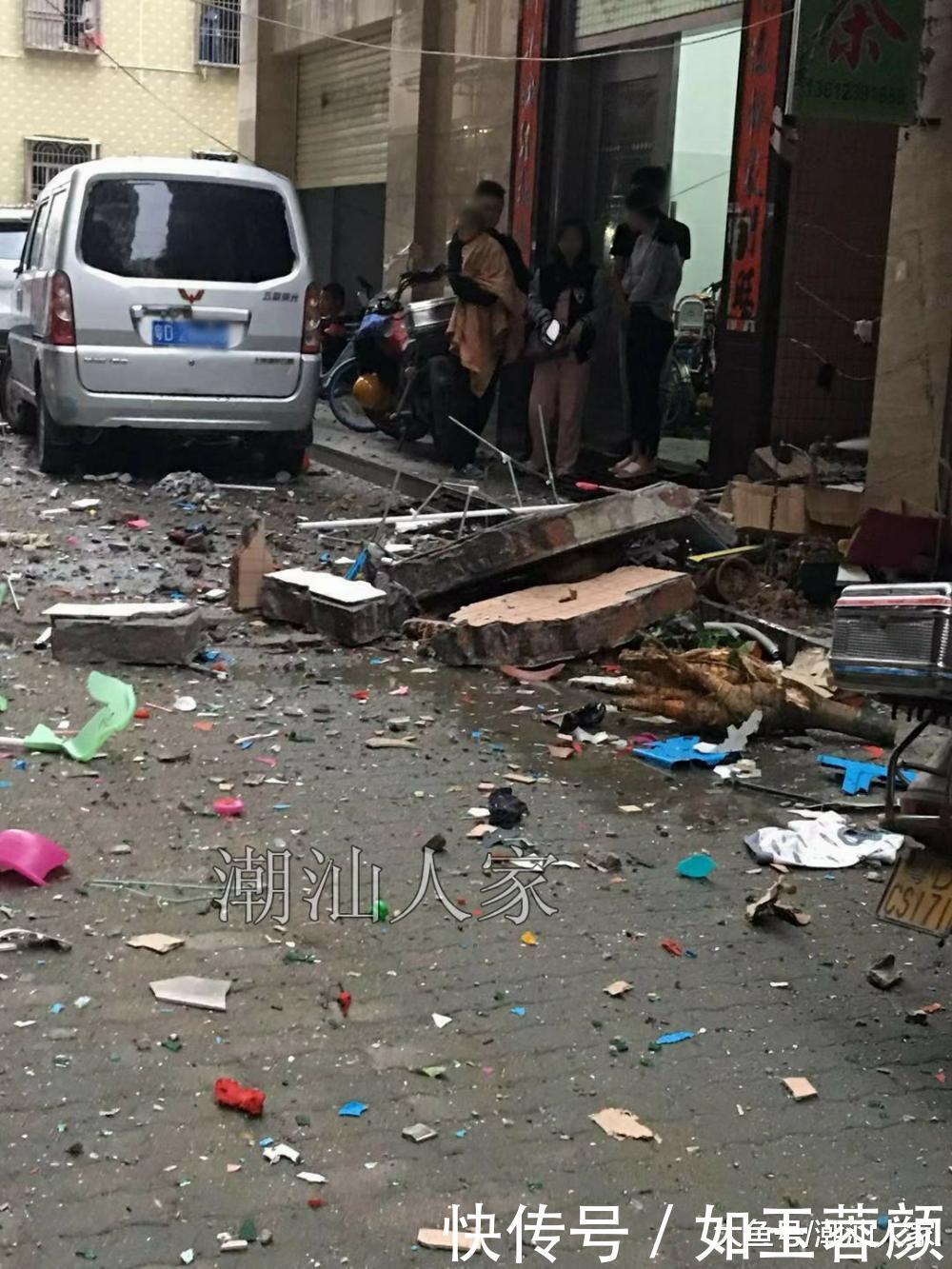 汕頭一民宅發(fā)生爆炸事故, 外墻倒塌, 造成5人受輕微傷