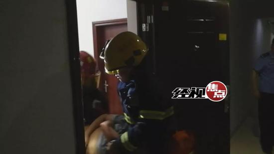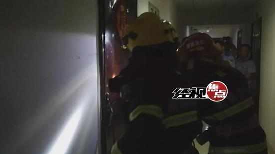 四分鐘后大門被破開,房間彌漫大量燃?xì)?,消防隊員丁煥章立即沖了進(jìn)去,他在廚房找到了被困的女業(yè)主。