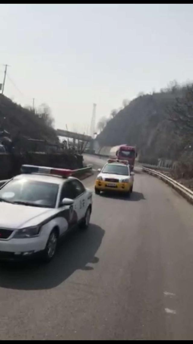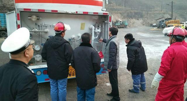 因事發(fā)地為當(dāng)?shù)鼗睒滗伌宕迕窬幼∠鄬γ芗瘏^(qū)域,一旦有火點引發(fā)爆炸,后果不堪設(shè)想。經(jīng)現(xiàn)場民警、消防人員與該車駕駛員和押運員商定后,決定采取由警車、路政巡邏車在前方帶道,該?;奋嚲o隨其后,消防車在尾部觀察警戒的方式,駛向距離晉冀交界6公里下高速且人員相對較少的開闊場地再進行處置。