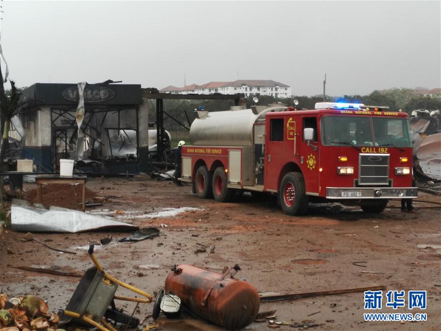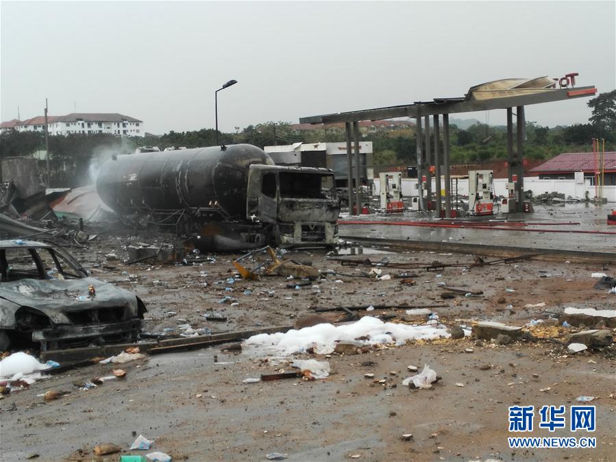 這是10月8日在加納首都阿克拉拍攝的燃氣站爆炸現(xiàn)場。加納國家消防局發(fā)言人安那格雷特8日說,加納首都阿克拉市區(qū)北部7日晚發(fā)生的燃氣站爆炸已造成至少6人死亡、35人受傷。新華社發(fā)(賈斯蒂斯·阿道伯伊攝)