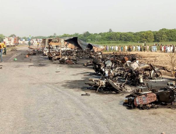 巴基斯坦油罐車大火123人死,婦女孩童收集溢出石油時(shí)爆炸